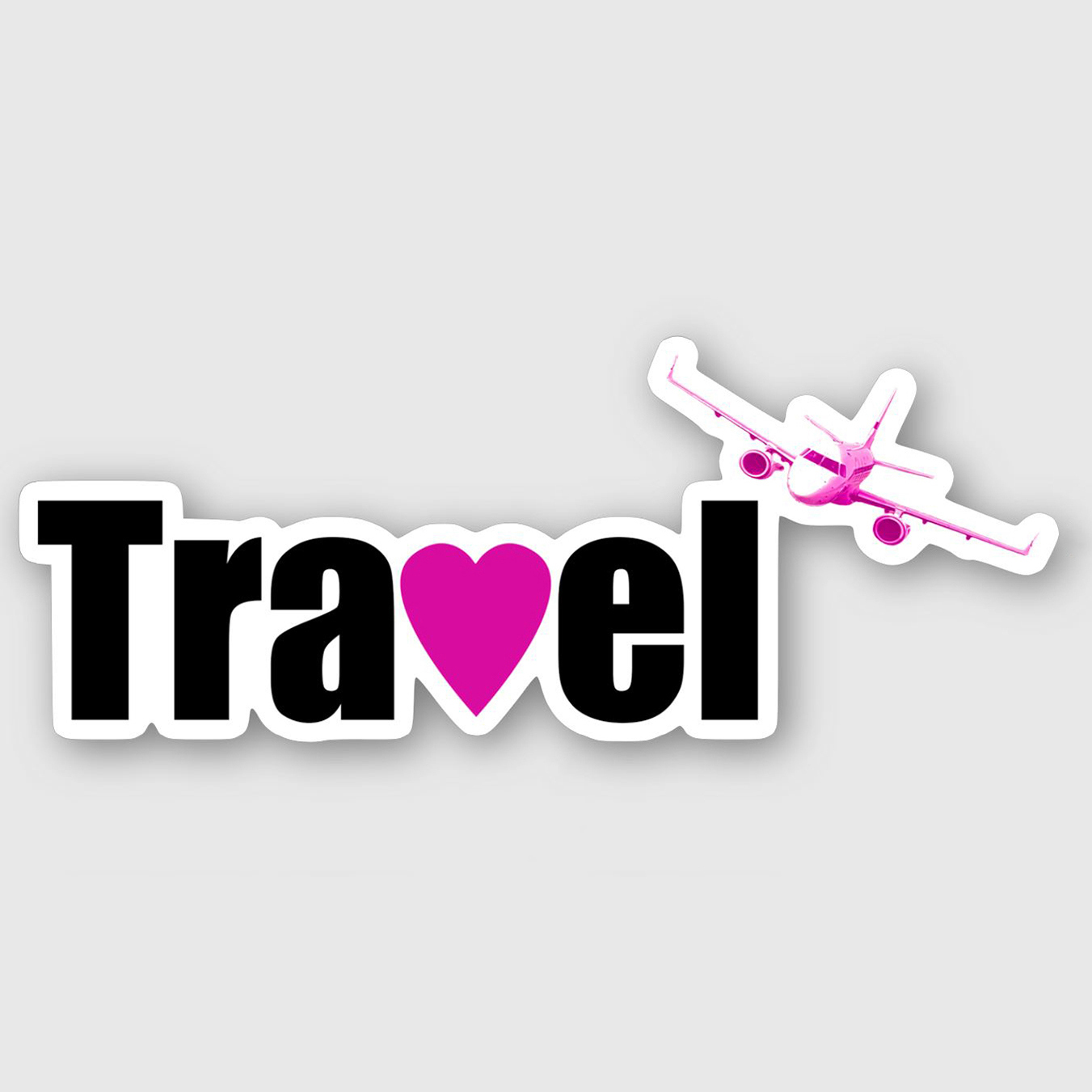 Sticker with text “Travel” and a pink airplane